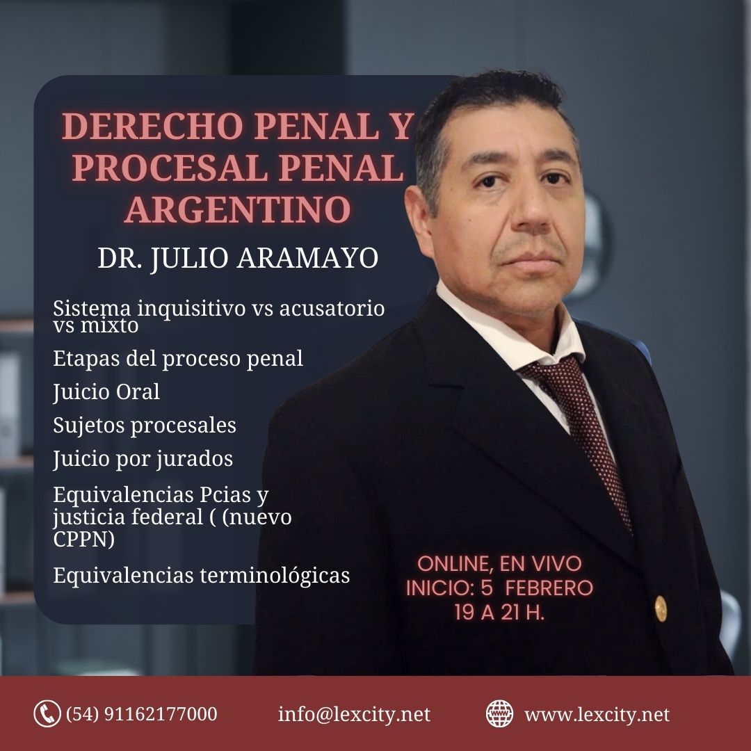 5/2/2026: Derecho Penal y Procesal Penal Argentino. Curso teórico-´práctico. Incluye juicio por jurados y juicio oral. Días de cursada jueves, de 19 a 21h. Online, en vivo.