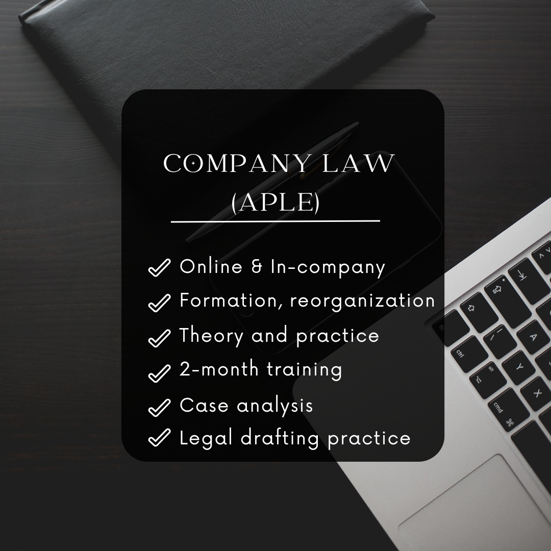 - 7/4: Company Law (APLE): teórico-práctico. Cursada: martes, de 19 a 21:00h. 8 clases de 2 horas. Online, en vivo. Duración: dos meses. .