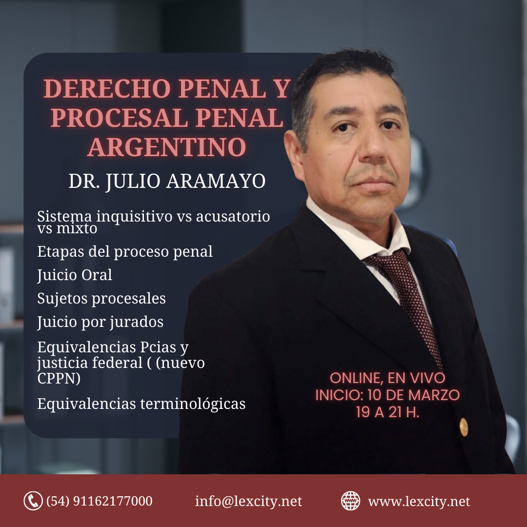 10/3/2026: Derecho Penal y Procesal Penal Argentino. Curso teórico-´práctico. Incluye juicio por jurados y juicio oral. Días de cursada jueves, de 19 a 21h. Online, en vivo.