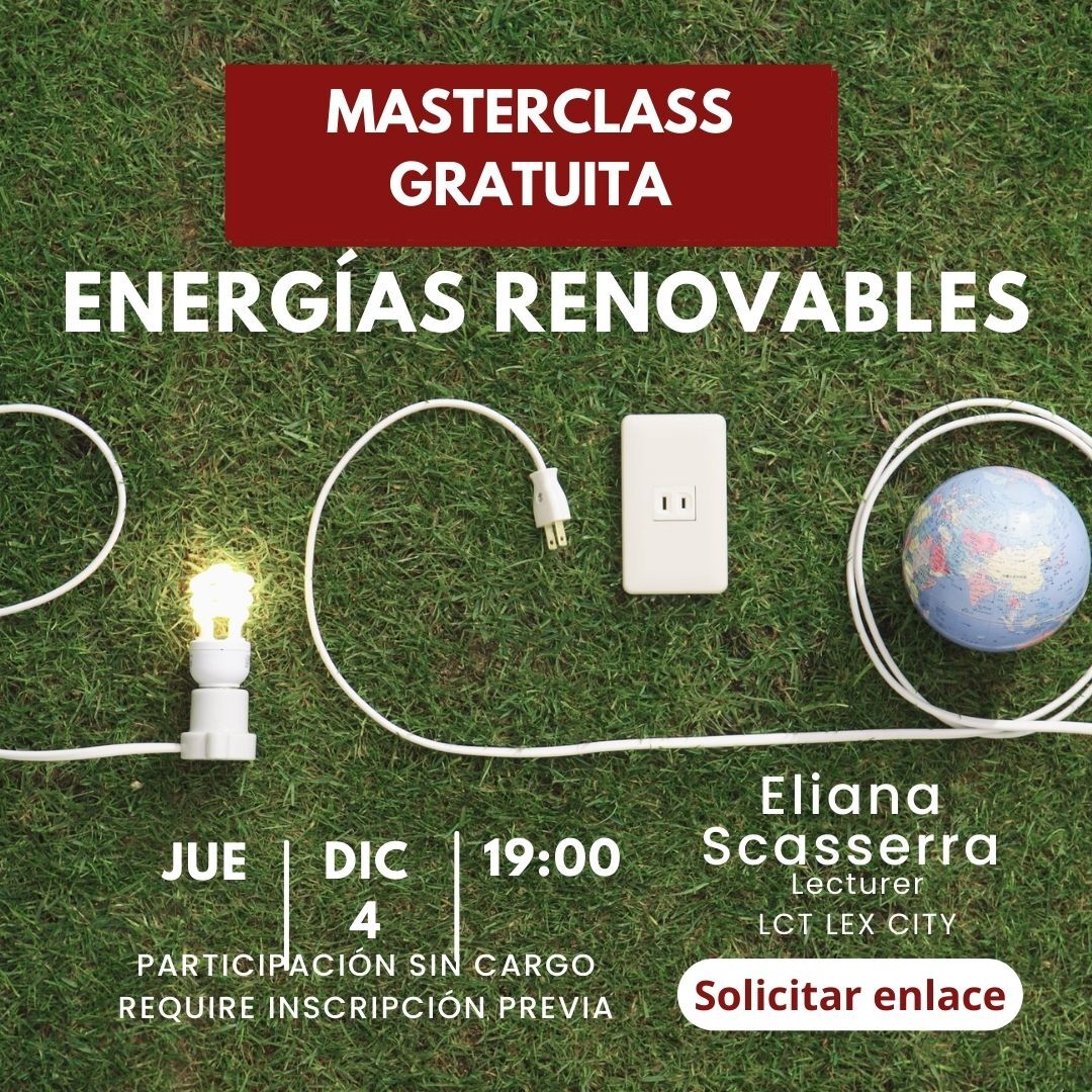 - 4/12 Webinar sobre Energías Renovables. Cursada: Jueves, de 19 a 21h, online, en vivo.